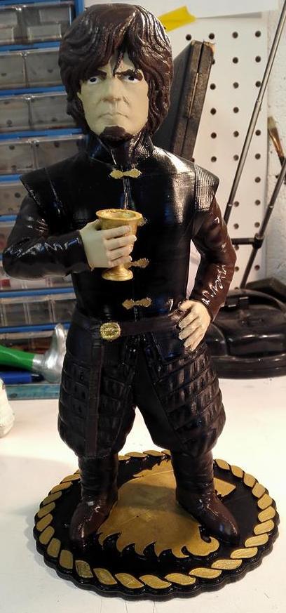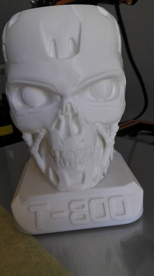 Des pièces destinées a la réalisation d'une maquette motorisée et articulée, la tour Daniel Fisher de Denver aux USA dont cette reproduction mesure 32cm de hauteur, le buste du T-800 du film Terminator, de grande taille et très détaillé et pour finir un personnage de la série game of thrones, imprimé puis peint.